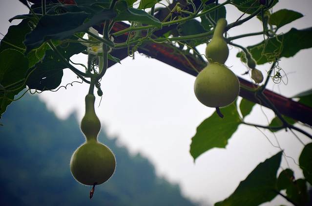 老板种的葫芦,看着看着就会产生错觉,总觉得它会突然掉下来,然后里边蹦出娃娃叫我爷爷。