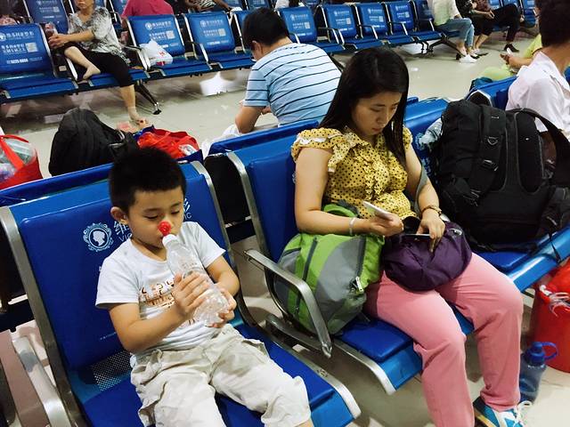 儿子还不到1.20,因此坐火车不用买票,我们是晚上10点多的火车,火车站的人依然熙熙攘攘。