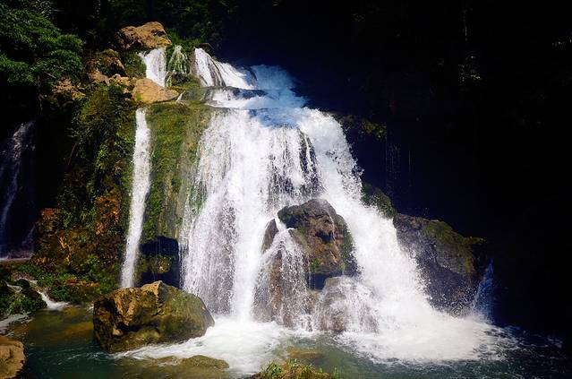 拉滩瀑布并不雄伟,但水量充沛,瀑形很美,值得一看,且瀑布是从高山上落下,宛如一条银龙顺山而下。