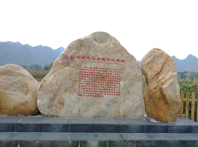 乘游船沿左江巡游可见多处岩画。但是我们在淡季且非周末去游览,居然找不到旅游团游江,只好自己开车,边走边问到了一处观景台——岜耀观景台去看岩画。此处观景台尚在修建中,停车场、游客中心、餐饮等设施都还没有,高德地图也没有显示。好处是不用买门票。