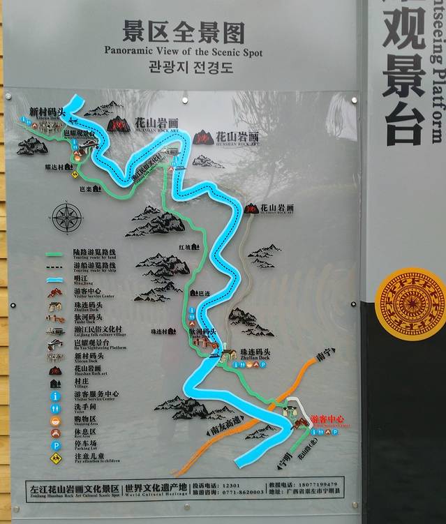 岜耀观景台及花山岩画位置图