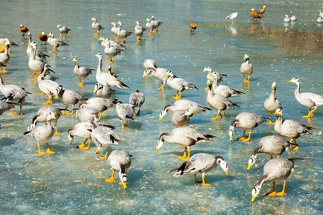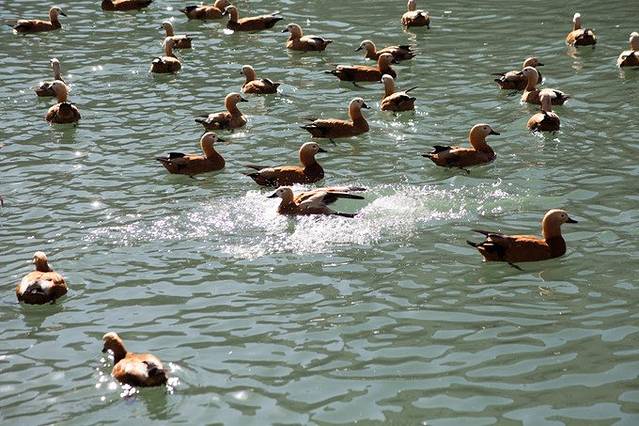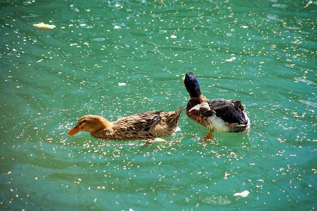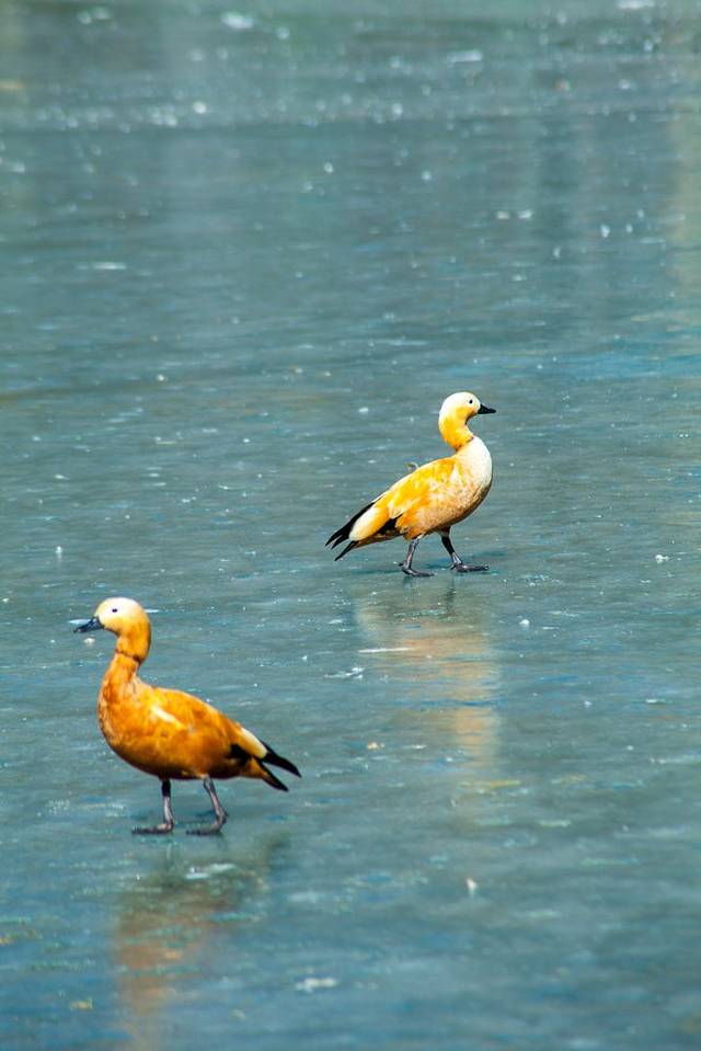 冰似乎融得更多了,鸭子们游得更欢了,离春天近了。