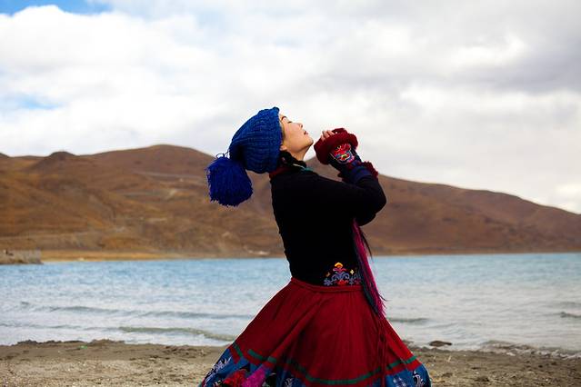 遇到两个在羊湖边上翩跹起舞的少女,被她的舞姿和播放的音乐吸引住了,多想也做个起舞的少女,让所有日子都婉约如诗。