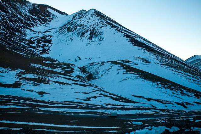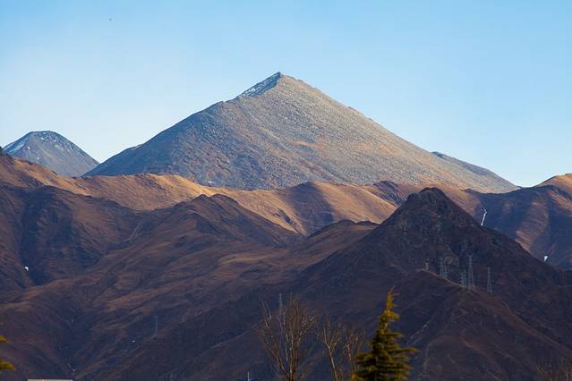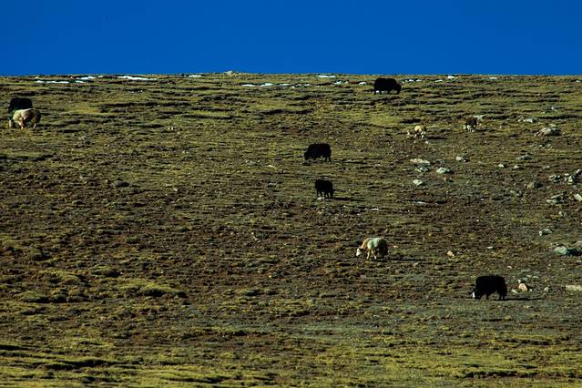 沿着盘山公路缓缓而上,把弯弯曲曲的路抛在后面,山上有野牦牛、羊沿陡峭的山石向上吃草,时刻抓着我们的眼球。又经过雅江河谷观景点,海拔4280米,景很美,但风巨大。