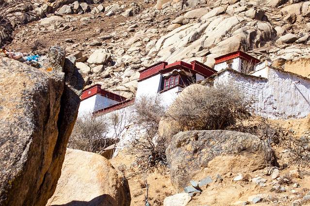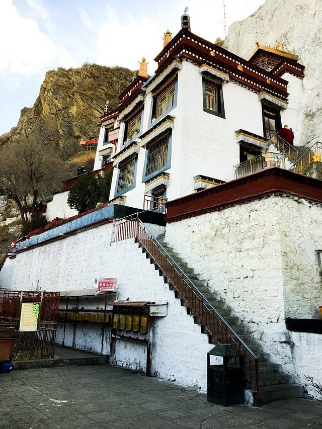 布达拉宫广场旁边有一个鲁普岩寺,就在药王山脚下,不是很起眼,总是路过这里,都没注意到。它是松赞干布为尼泊尔赤尊公主所建的洞穴式宫殿,高九层,依然有藏人在这里朝拜。需要门票20元,我们这几天看寺太多,有些审美疲劳,这小寺庙大家都放弃了。