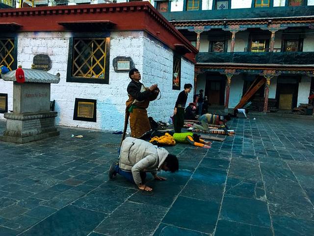 天黑了,在这里转经和磕长头的藏人都久久不散去,作为我们没有信仰的人,无法理解,但对于他们,为了信仰可以放弃一切。