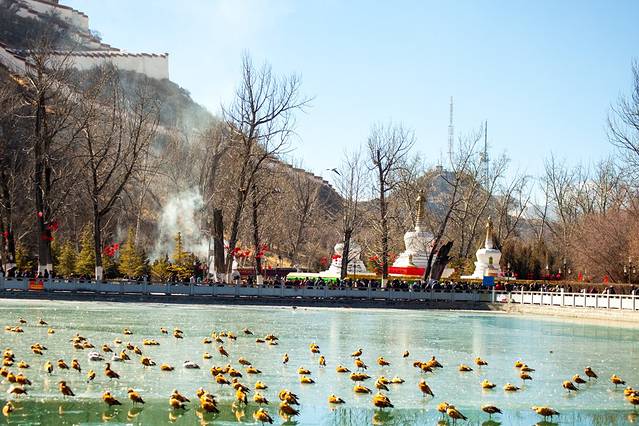 今天日程:经过宗角禄康公园去布达拉宫旁边的邮局买点明信片,然后去广场上看鸽子,下午回客栈包饺子准备晚上一起聚餐过大年三十。