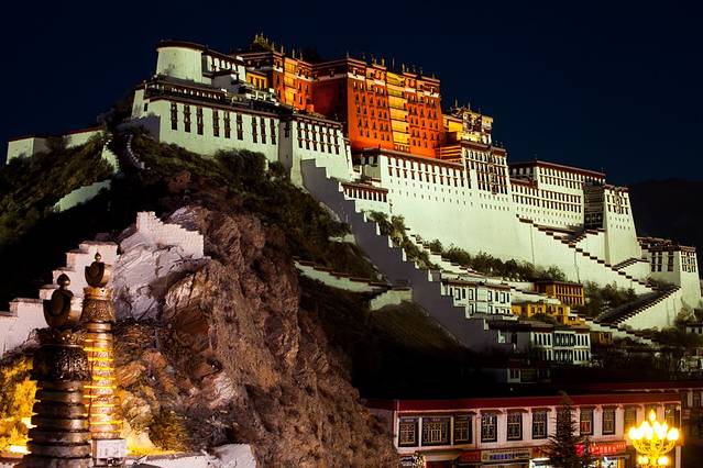 拉萨城不大,楼房不高,最高三四层。晚上灯火通明,也是好看。
