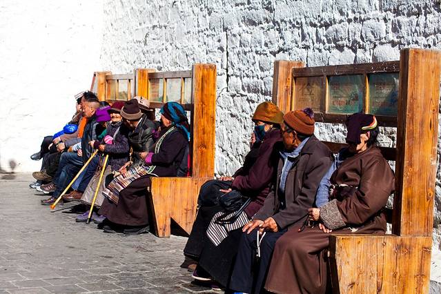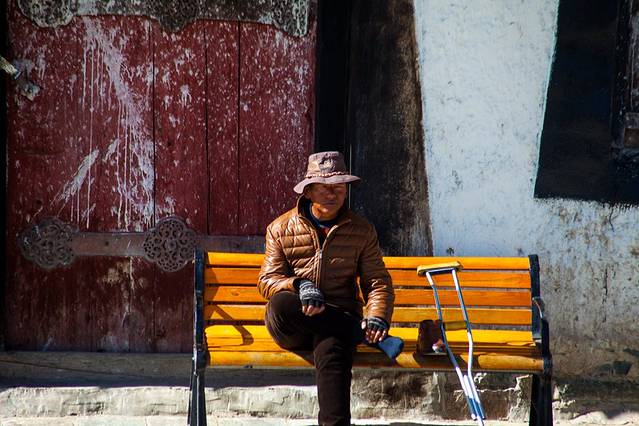 总能碰到很多在门口,在路边椅子上坐着晒太阳的老人,目光平静,神情淡然。有点羡慕藏人的生活。有牛有羊有空,不过多追求物质生活,有信仰支撑,简单快乐。