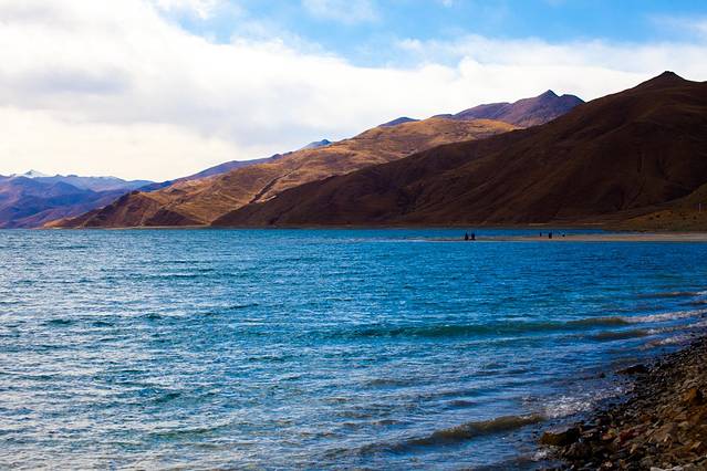 羊湖的水也被誉为世界上最美的水。在阳光的照射下,湖面泛着各种层次的蓝色和绿色,置身其中,如梦如幻。