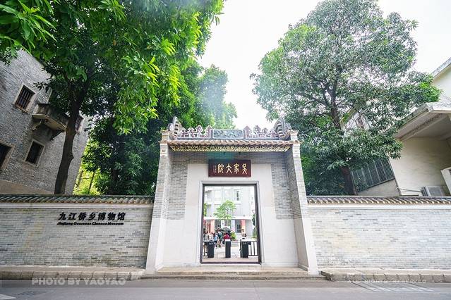 而位于九江镇的吴江大院,由旅越华侨吴庚南始建于清末光绪年间,院内既有极具广东传统特色的雕花木“趟栊”、木门窗,也有饱含西方元素的意大利瓷砖、雕花玻璃门窗、圆拱飘窗露台,里面尚存6幢“镬耳”大屋、4幢高层洋楼及花园、亭阁等建筑。