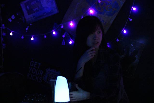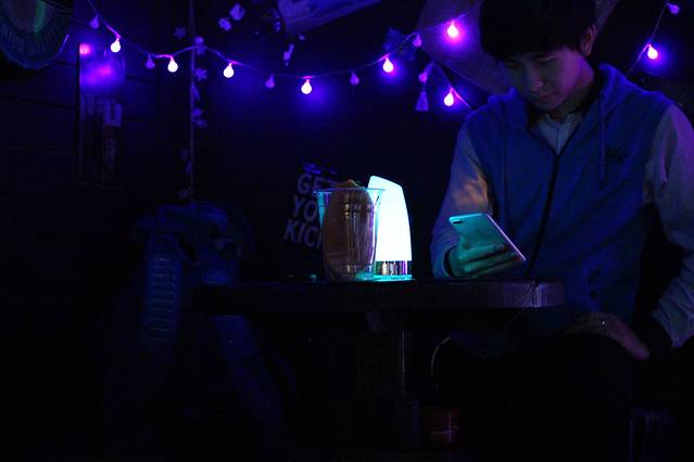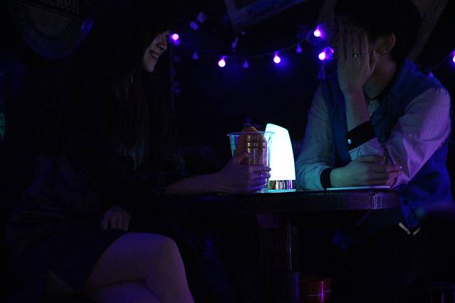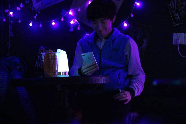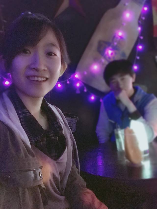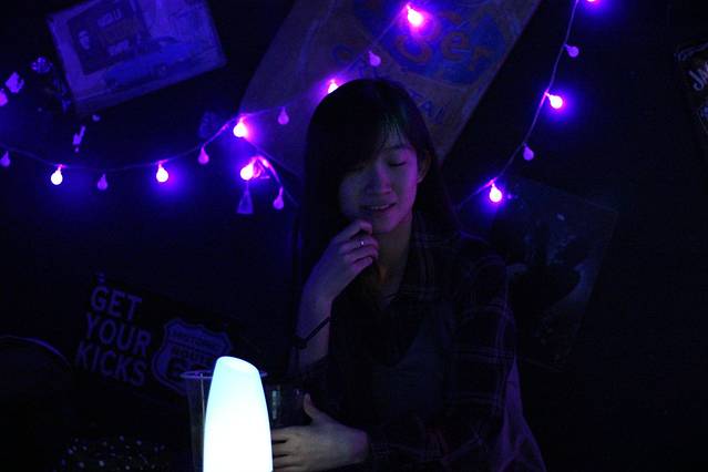 酒吧里只有我们,里面黑漆漆的,只有每个桌子上的呼吸灯不停闪烁着微弱的光芒,特别有情调。我们点了一杯莫吉托,一边喝着酒,一边听驻唱唱歌。驻唱唱得真的非常好听,从成都到一万次悲伤,从平凡之路到告白气球,几次准备离开,都被歌声拉得挪不动步子。第一次觉得原来歌声真的能留住人。
