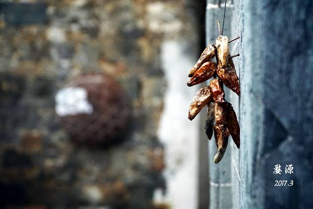 奶奶家墙上的辣椒,远处的笸箩,一栋老房子里的故事很多很多,奶奶热情的邀我坐坐和她聊天,但是要拍晨雾的我拒绝了,如果你去到婺源,记得陪她聊聊天