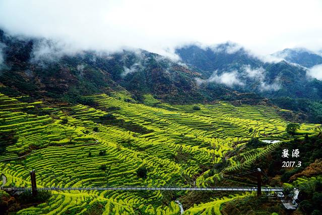 和江岭不同的是,这里的油菜花是梯田状的,像连绵起伏的波浪,站在垒心桥上下观,恢弘壮阔