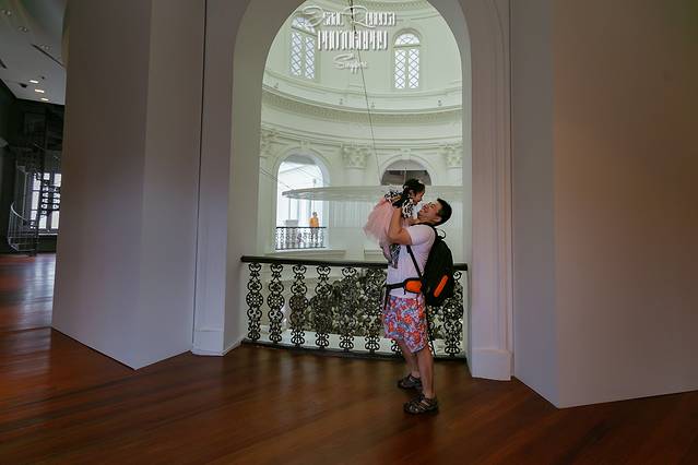 吃完饭,我们说要去国家美术馆,前一天和飞机上的好心姐姐聊起去哪玩,国家美术馆硬生生被我自己口误说成了国家博物馆,然后一直口误到今天,同学还帮忙看了站牌送我们上了公交车,下车才发现,来错地方了。不过错有错着,这里依然是个有趣的地方。建于1849年的新加坡国家博物馆,是新加坡历史最久远的博物馆。馆内主要展示新加坡历史,由于正值元旦新年之际,本馆所有展区for free,所以来都来了,我们就逛逛了。