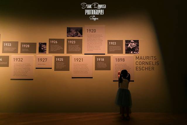 这次画展的主题是journey to infinity,我理解为脑洞大开的旅程,展示了艺术家Escher的人生和作品,至于他是谁,摩里茨·科奈里斯·埃舍尔,英文名字Maurits Cornelis Escher,通常简化为M. C. Escher,荷兰图形艺术家。他以其源自数学灵感的木刻、版画等作品而闻名。埃舍尔1898年出生于荷兰北部的Leeuwarden,1972年3月27日逝世,享年73岁。