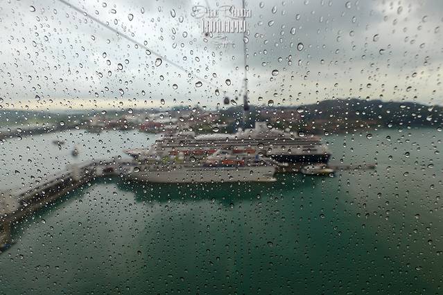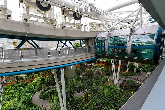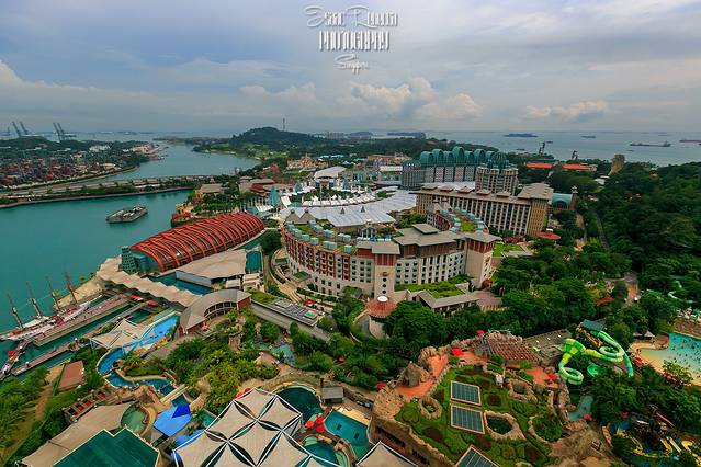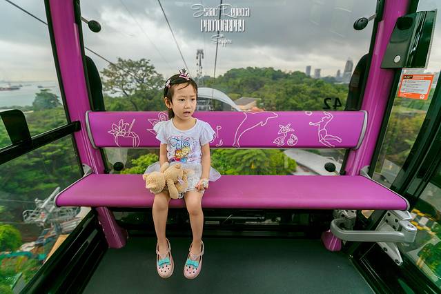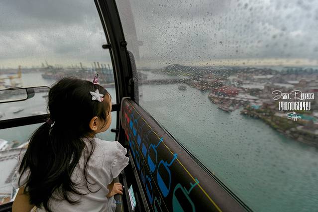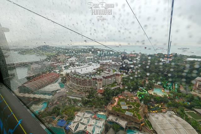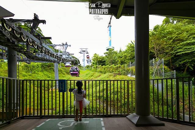 到达圣淘沙,天还阴着,雨已经停了,换一辆缆车继续向目的地前行。