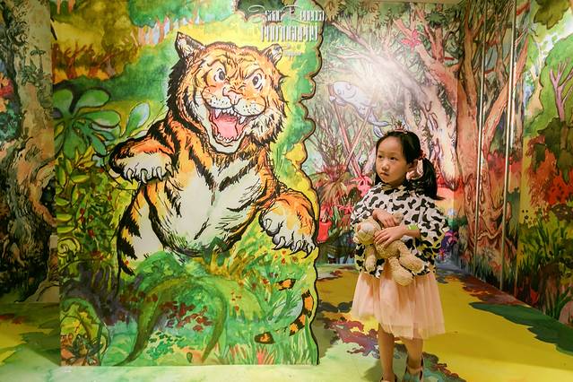 这里有好几个专门的房间供孩子们学习,首先第一个就是身临其境的3D卡通世界。在里面可以穿过森林,跳上荷叶,还能穿过山洞,钻进树的身体里,还能过家家。