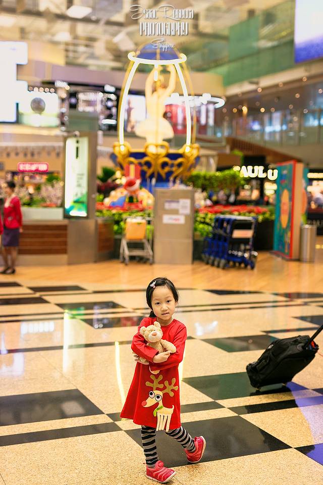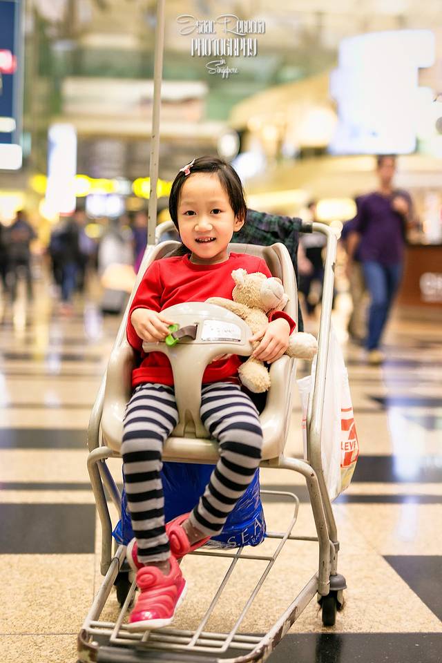 随着飞机起飞,在黑暗中轰鸣了5个小时终于落在了樟宜机场的地面上了。期间小太阳在我怀里辗转反侧,怎么也睡不踏实,鼻子塞塞,最后降落过程还流了鼻血,手忙脚乱,还好有旁边座去新加坡求学的姐姐以及空乘帮忙,擦拭干净冰敷止血,这也是小太阳又一个第一次,“流鼻血,好可怕哟!”第二天就听她不停念叨。