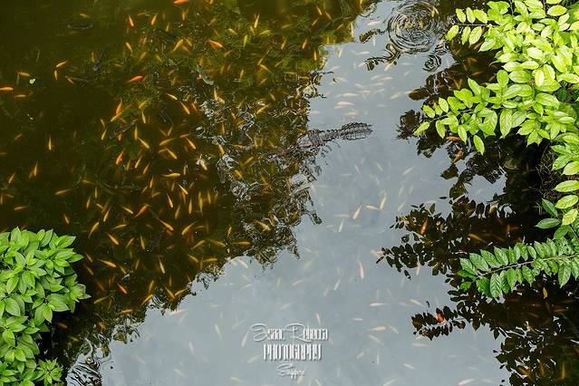 穿过一条满满都是鱼的小溪,定睛一看,还有可怕的鳄鱼,这条是马来鳄。