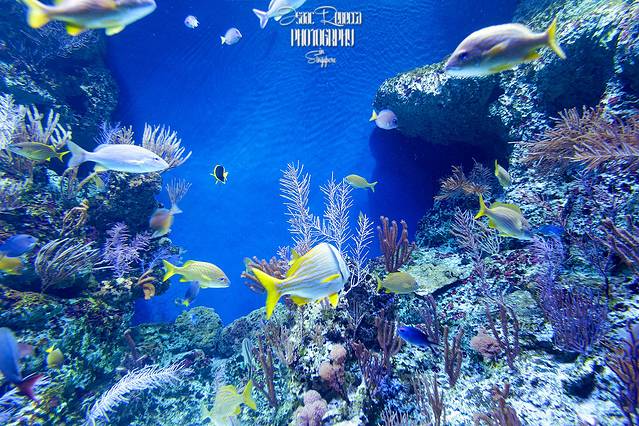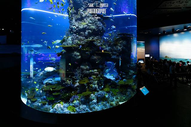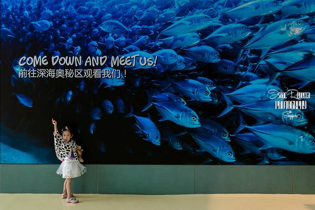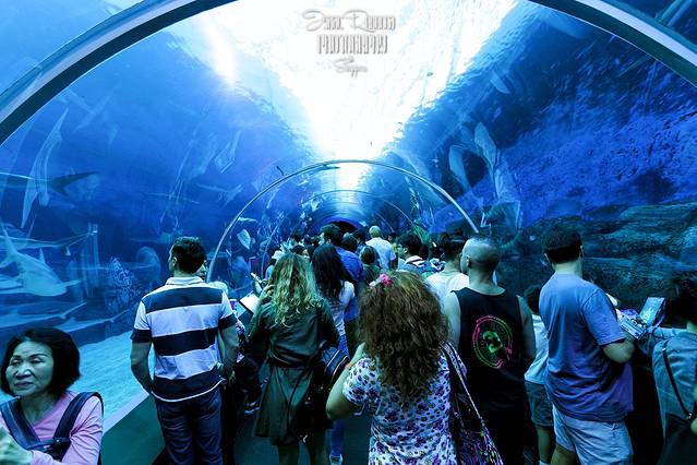 进入主要展馆区域,首先通过一条海底隧道,这里会出乎意料的人多,大家都喜欢在这里合影。