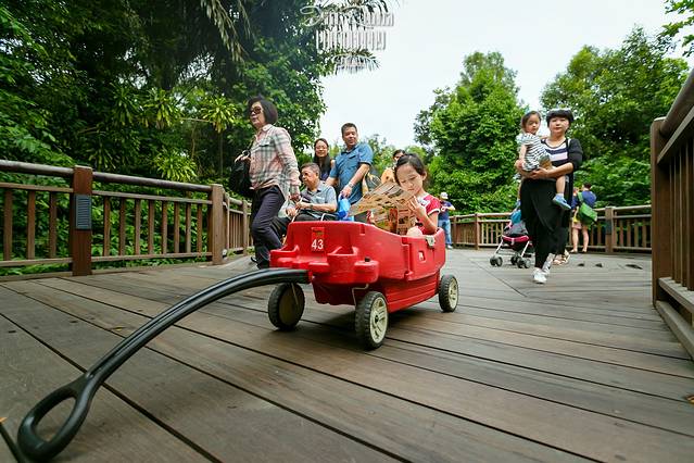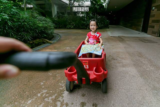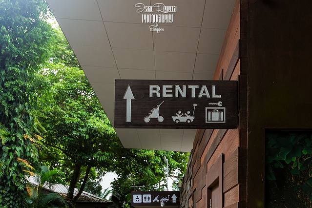 进门右手边,可以租推车,3岁以下是婴儿车,三岁以上就是小太阳坐的这个了,像个小汽车。15新元租一天,其实刚进门我是没想到去租的了,直到小太阳突然要求,“抱,抱,抱!”,才逼出了最机智的我,走,租车去!