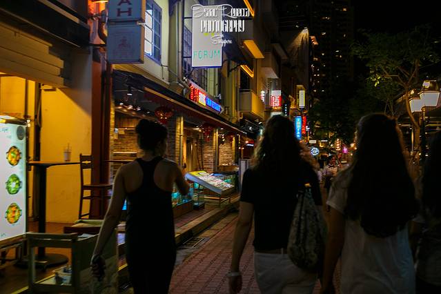 回酒店一觉醒来已经天黑了,温度接近38,晚上节目看来也得放弃了,小太阳说要喝粥,这时候才发现住的附近没有类似的餐饮店,倒是意外发现了街边的薏米水,祛热除湿,我就果断买了鼓励小太阳多喝点,没想到这味道很合胃口,咕咚咕咚都喝完了,坐了一站地铁来到Promenade,也就是摩天轮附近,想着带她看看夜景顺便找个有粥喝的地方。