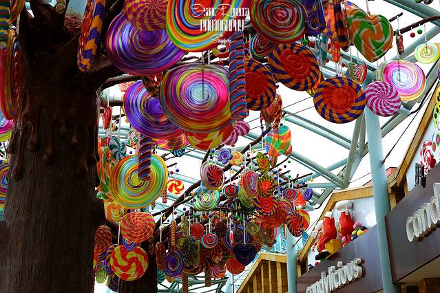 海洋馆出来天空也放晴了,看来晚上摩天轮好看咯。出门就看到了糖果店。