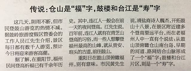 “三山两塔一座楼”:三山指的是福州城内鼎足而立的乌山、于山和屏山。三山之上,各有标志之物,乌山有乌塔,于山有白塔,屏山有镇海楼。相传,三山就是福州的龙脉,乌塔和白塔分列东西,那是龙的双角,镇海楼在北,那是龙的尾巴🐲