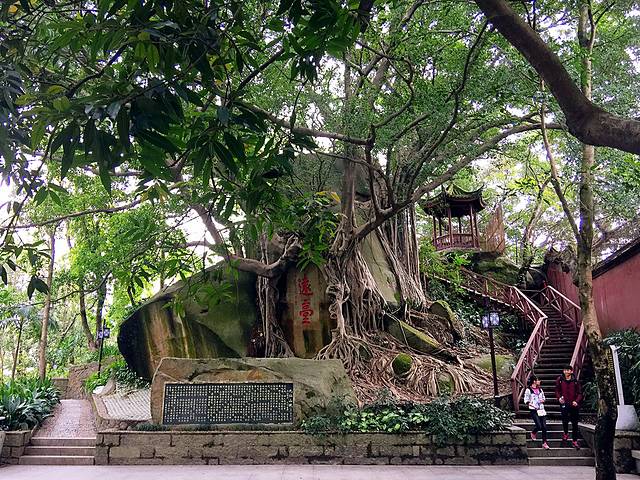 平远台,始建于宋代,毁于元朝战火,是于山二十四奇景之最。峰北侧的平远台石刻刻于明代,一棵老榕树已经将石刻包住了~