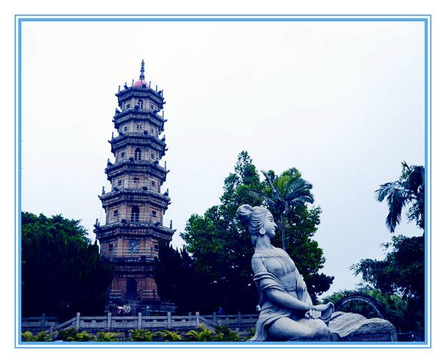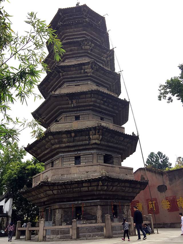 乌塔位于福州市内乌石山东麓,与于山白塔遥遥相对,原名 “崇妙保圣坚牢塔”。因塔身为花岗岩青石所砌呈乌黑色,故称乌塔。它的前身系唐贞元十五年所建“净光塔”。塔为八角七层,通高三十五米,每层塔壁均有浮雕佛像,共有四十六尊。四层、五层、七层,嵌有塔名碑、建塔塔记和祈福题名碑等。