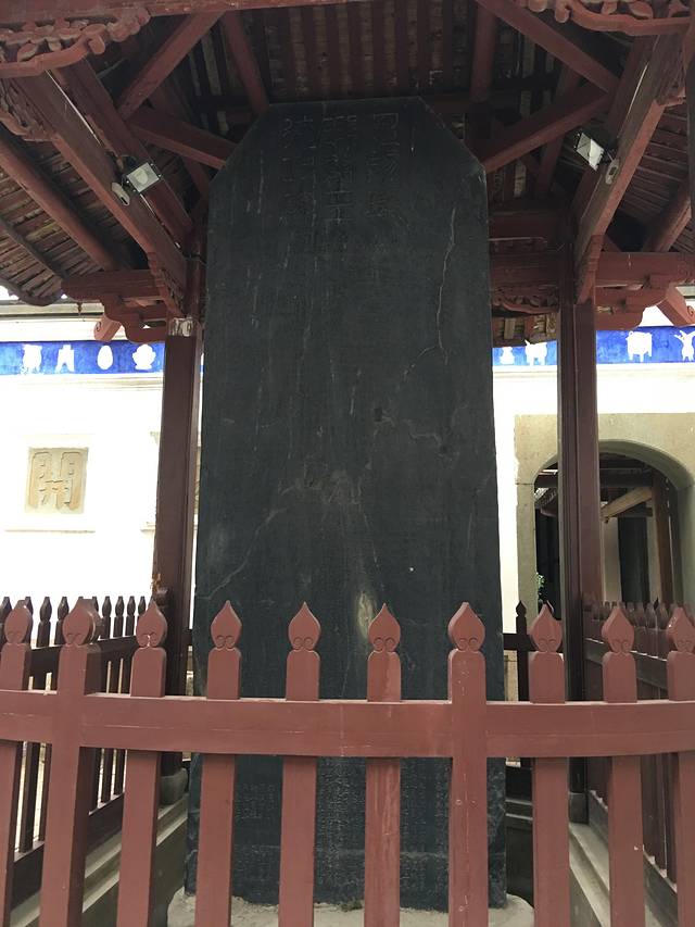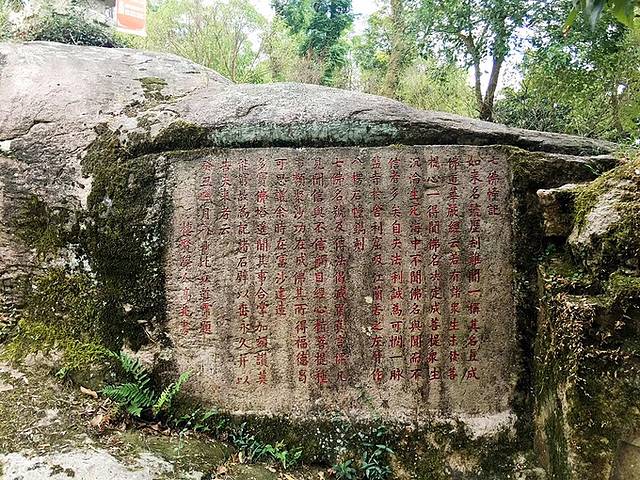 此碑官方简介:该碑为清乾隆44年(1779年),闽浙总督三宝上疏,得乾隆皇帝恩准后竖立的。碑高3.5米,宽1.59米,厚0.4米。质地为水成岩石。碑上方镌刻的是乾隆皇帝御书的《般若波罗蜜多心经》,至今已有220多年的历史。碑面阴刻一尊络腮胡须、形象略嫌粗犷的大士(男相观音),大士坐于树下,手持净瓶,烟口飘出一缕轻烟,烟端处显现一尊面目姣好的女相观音。据记载:观音为佛教大乘菩萨之一,传入中国之初为男相,元以后盛行女相。而此碑表现的正是研究观音从男相变为女相的有力的实物见证。这在福建是仅有的,在全国也是极为罕见的。根据碑中的文字记载,该碑又是古代“祈天求雨”的重要实物资料,弥补了古代官员“祈天求雨”时,只留下文字记载,而没有实物的不足,实属难得。