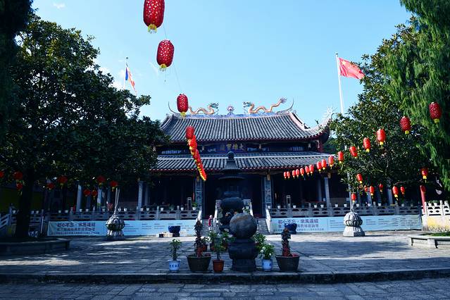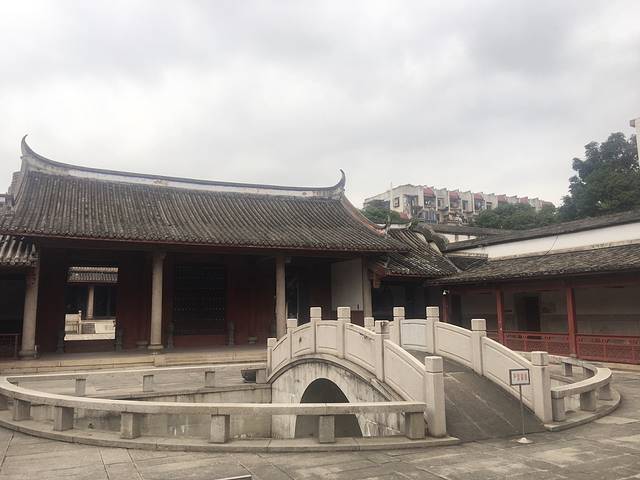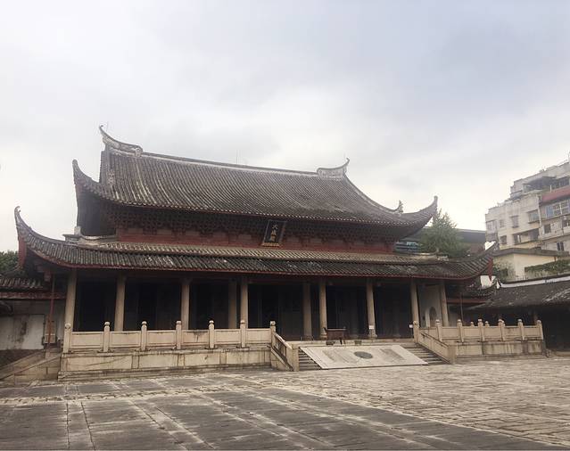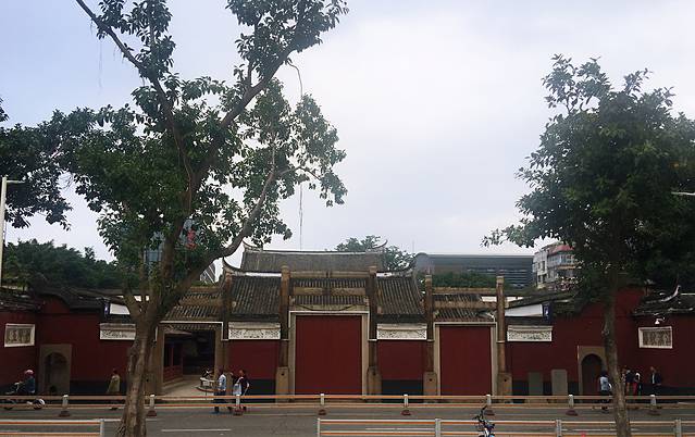 福州文庙,又称“先师庙”、“圣人殿”,初为培育生徒的学宫,兼祀孔子,在州城西北。唐大历七年(772年),福建观察使李椅移建今址。位于福州市鼓楼区圣庙路,现存庙宇是清咸丰元年(1851年)十二月至四年(1854年)六月所建。坐北朝南,占地7552平方米,建筑面积4000平方米。有下马碑、棂星门、泮池、大成门、大成殿、孔子坐像、七十二贤人石雕像等~