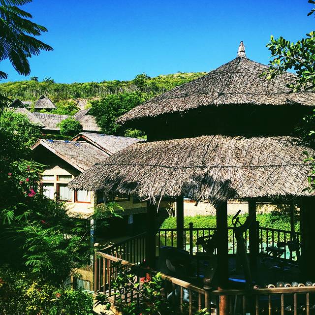 下午晚些时候到达蚕岛。入住汉谭酒店,这个酒店的风格就和马尔代夫酒店的那些房子一样,感觉像草房,但是真的很有特色。