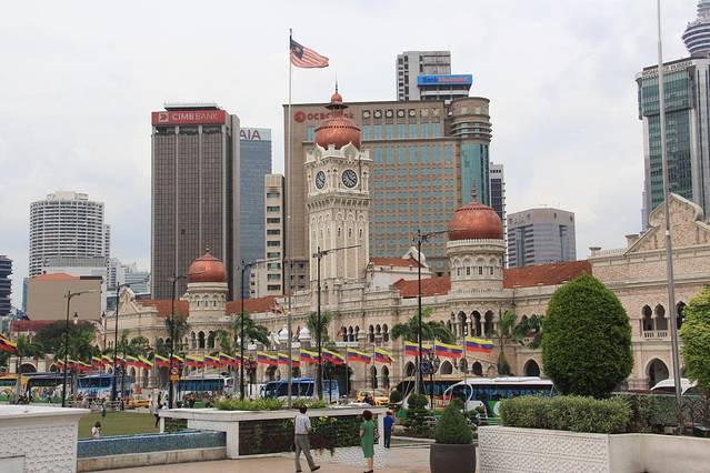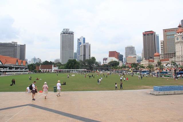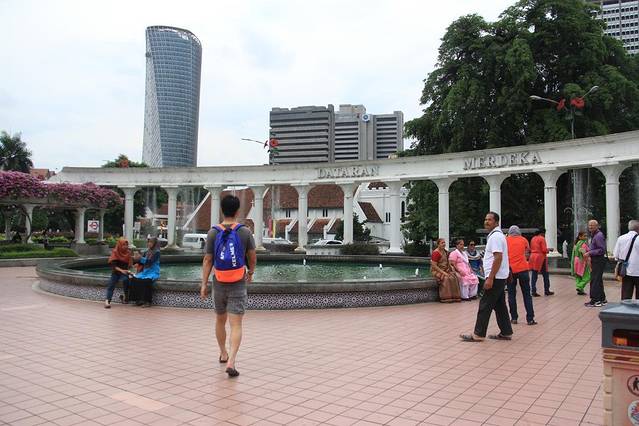 我们的下一个目的地是独立广场和苏丹阿都沙末大厦,查了地图从KLCC做LRT可以去,我们便开始寻找,问了车站附近的一个小姑娘,当我英语说不出来蹦了几个中文字后,小姑娘立刻用马来西亚腔调的中文无障碍的和我们交流起来,顿时我俩感觉有华人的地方真好!她告诉我们买票到Masjid Jamek这站,然后出站找像华人的人问一下就行了,非常好找,于是,我们在吉隆坡就体验了一下公共交通,地上地下都有,风景不错!