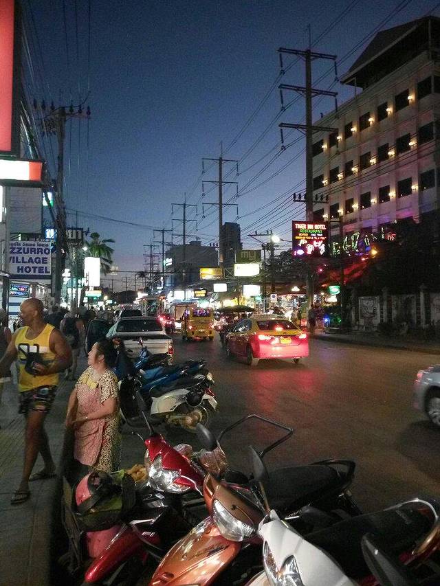 从街口走进去的一路都是各种酒吧,各种站街的,分不清男女,着实吓人,到酒店安顿好就出门了,吃了点路边摊我们就出发到步行街。我上次来是跟团,没有去步行街,但说实话来芭提雅确实必须得来趟步行街,有很多场子都拉客人进去看秀,这就是荤秀啦,搞了价一人100去看了秀,呵呵,长见识了,不过没看完我们就走了,因为已经1点半左右了,好困。
