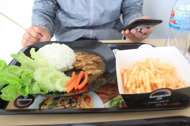 早上一觉自然醒已经11点半了,起来逛了一下酒店附近,因为连续几天都吃的是泰国菜,所以中午我们就找了个吃汉堡和简餐的地方,价格很便宜但是量比较少。