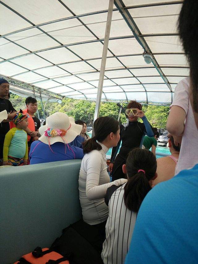 吃过午饭启程到大皇帝岛,然后可以选择登岛或者再次浮潜,表姐带侄女去登岛了,我跟老公继续浮潜,也就是这次浮潜,我俩都彻底晒伤了,老公的整个背全部通红,所以各位亲出海也别忘记多补几次防晒霜哦!