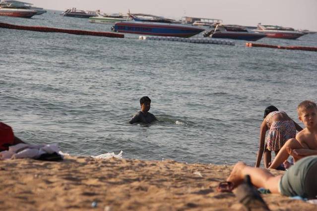 之后我们便买了点水果饮料晃晃悠悠的去了海边,老公看到海还是想下去玩,就回酒店换了泳裤,而我就在海边吹飞玩游戏啦。不过芭提雅的海滩跟普吉岛真的没法比。