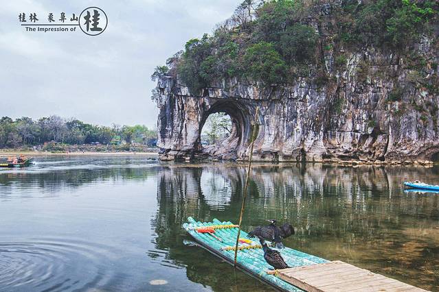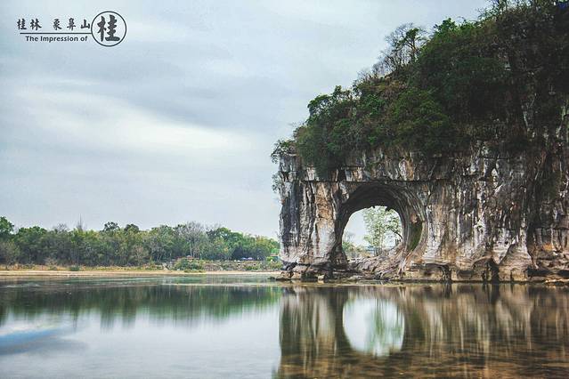 象鼻山又名象山,是公园的主要景点,其山形酷似一头驻足漓江边临流饮水的大象,栩栩如生,引人入 胜,被人们美誉为桂林市的城徽。