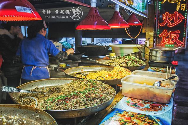 荔波县城的小吃街,在邓恩铭广场旁边,是一个很热闹的地方,但由于二月份属于旅游淡季,所以很多饭店并没有开,但是看到那些大大小小的餐馆,可以想象出这里繁华的样子。