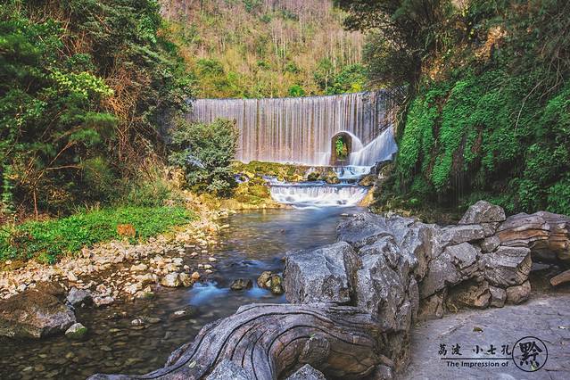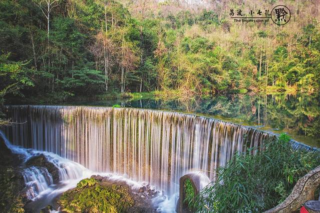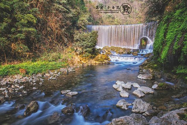 小七孔风景区位于荔波县城南部30余公里的群峰之中,全长7公里,景区响水河上横跨着一座青石砌成的七孔拱桥,故而得名。景区融山、水、林、洞、湖泊和瀑布为一体,秀美幽静,加上浓郁的土家和瑶族风情,使得小七孔景区名声大震。