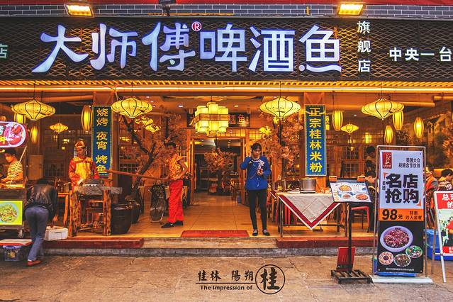 在西街里,会看到很多很多家店,都是招牌啤酒鱼,而且每家店都有点来头,这家接待过马拉西亚总统,这家上过湖南卫视,那家又上过中央电视台……最后经过实地考察,发现“大师傅啤酒鱼”在西街这里足足开了8家分店,想必是有自己红火的道理吧。