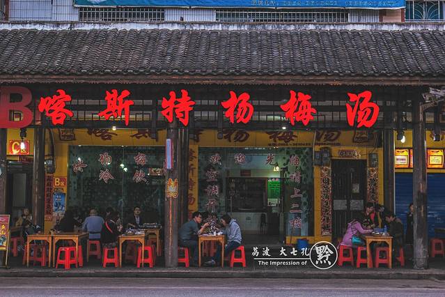 在小吃街的丁字路口有一家喀斯特杨梅汤,里面的杨梅汤真的很解乏,在经过长途跋涉后,坐在小镇的椅子上,喝着杨梅汤,Cool~