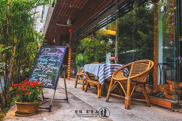 在几天的骑行里,或者说是在接下来两天的游玩中,发现阳朔的客栈都十分的用心,最起码在店面的外装修上都设计的让人跃跃欲试。所以无论是遇龙河附近的客栈还是、西街、兴坪,我觉得都比较好。当时因为行程上面有很多不确定因素,给几个国际青年旅舍打电话,发现在一些时间和行程的把握上拿捏不定,所以选择了一个好评较多,一个当地人开的客栈,当然,询问了两家,都十分热情的给我推荐行程,设计路线,包括租车价格,路线公里数都十分准确的告诉你,我觉得简直不能再靠谱了。