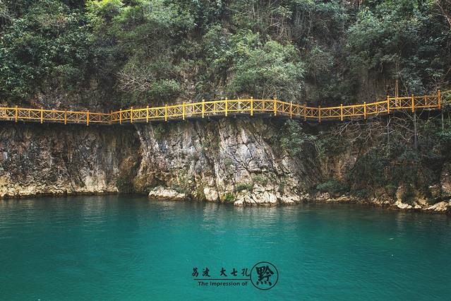 有些时候真的感叹大自然的魅力,可以把很多我们觉得漂亮的颜色拼凑在一起,然后便成为了游客们争相留念的景点。也许说它像九寨沟的水,但是却比它更为深沉;也许说它枝垭杂乱无人修建,但是却平添了几分历史的沧桑。或许在每一个去过的游客心里都会重新认识一种颜色,它叫小七孔。