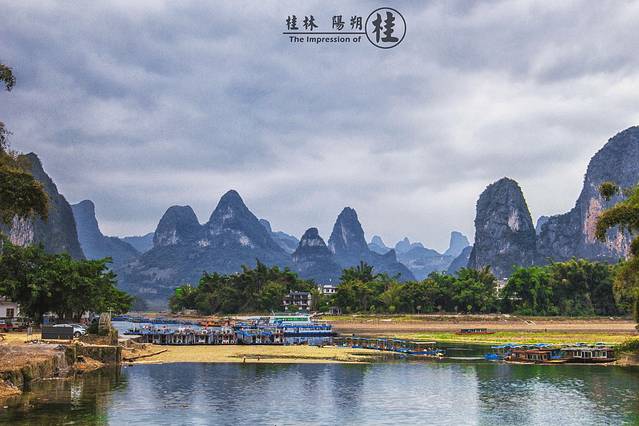 下了山就是兴坪的码头,因为是枯水期,所以乘船游览漓江的人并不多,鲜有一些旅行团,会带队在漓江的山水中乘船而行。