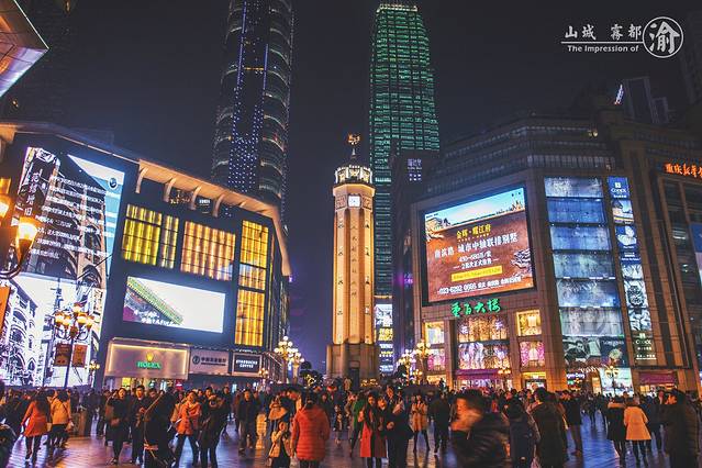 解放碑四周高楼林立的水泥森林,让人感叹一个迅速在山丘中耸立发展的城市。