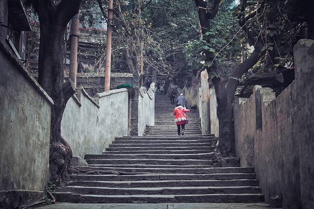 重庆是一座依山而建的城市,好多几十层的高楼 你可以在大厦的中部直接下到地面,当然,不是跳楼也不是坐电梯,因为这里有天桥直 接通往与楼平行的半山腰。所以在重庆,总有爬不完的坡坡坎坎在等着你。有歌为凭: “山高路不平,好个重庆城”。