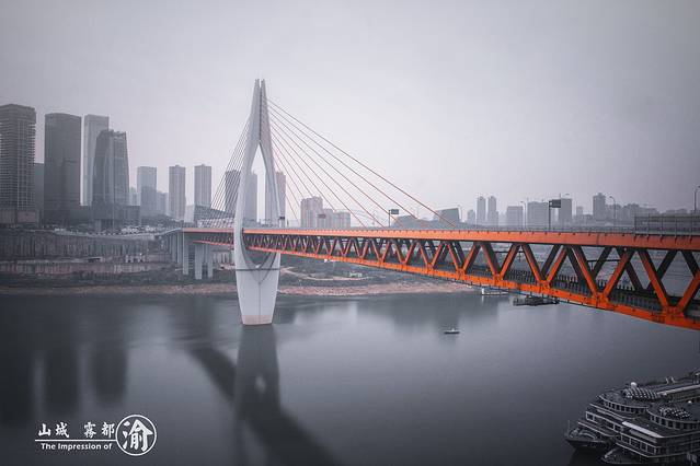 重庆有两座造型非常具有特色的大桥,一座是通往南山的水东门大桥,一座是在洪崖洞的千厮门大桥,在学校宅了很久,初到陌生的城市像打了鸡血一样亢奋,很幸运的是,第一天的早晨一反常态的看到了蓝天,所以早早的起来,找个地方看看找个城市苏醒的模样。